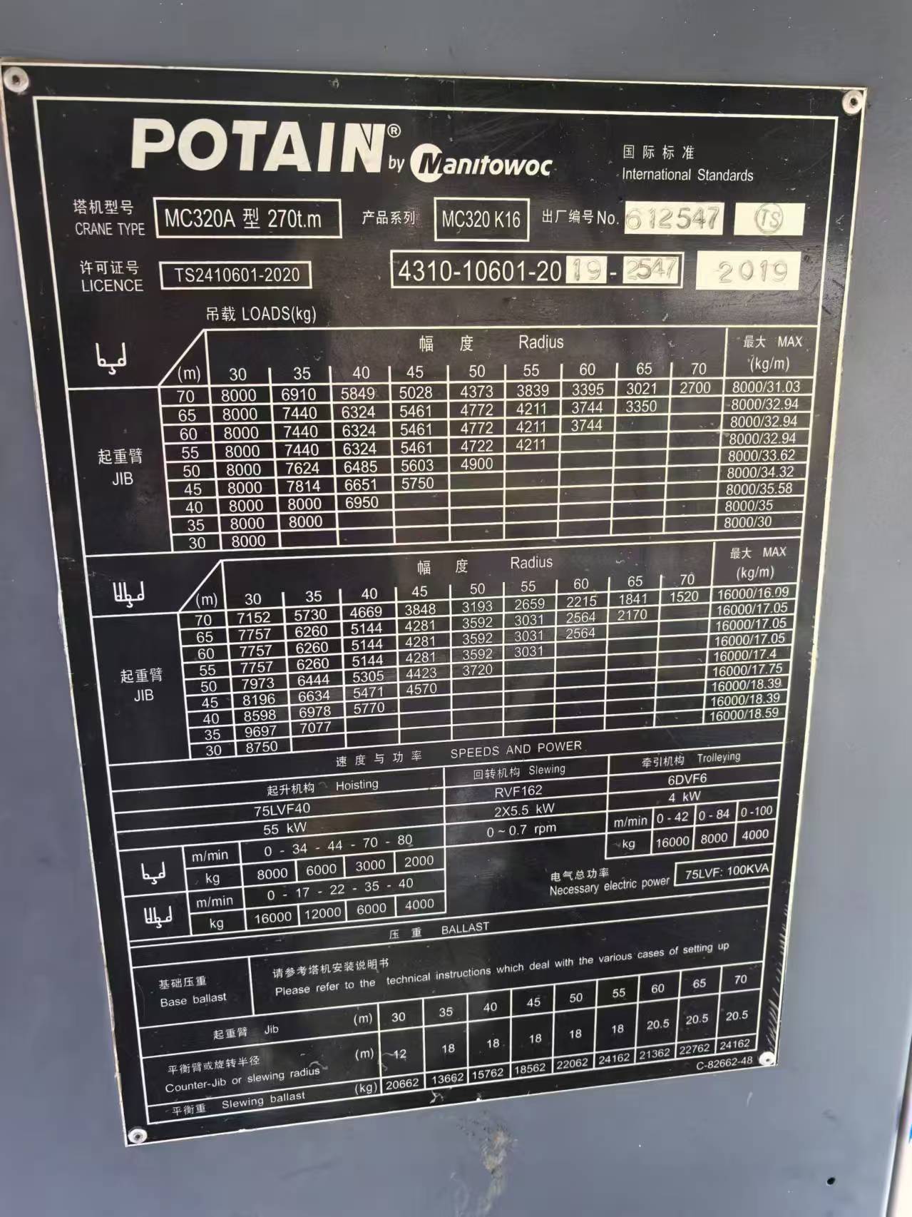 "POTAIN MC320 ٹاور کرین بنیادی معلومات"